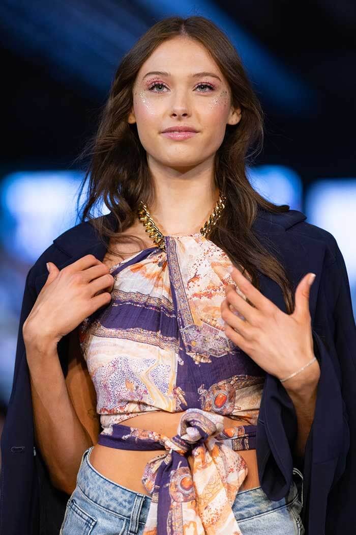 Carter Halter Chain Top, with gold halter chain and elasticated shirred back bodice