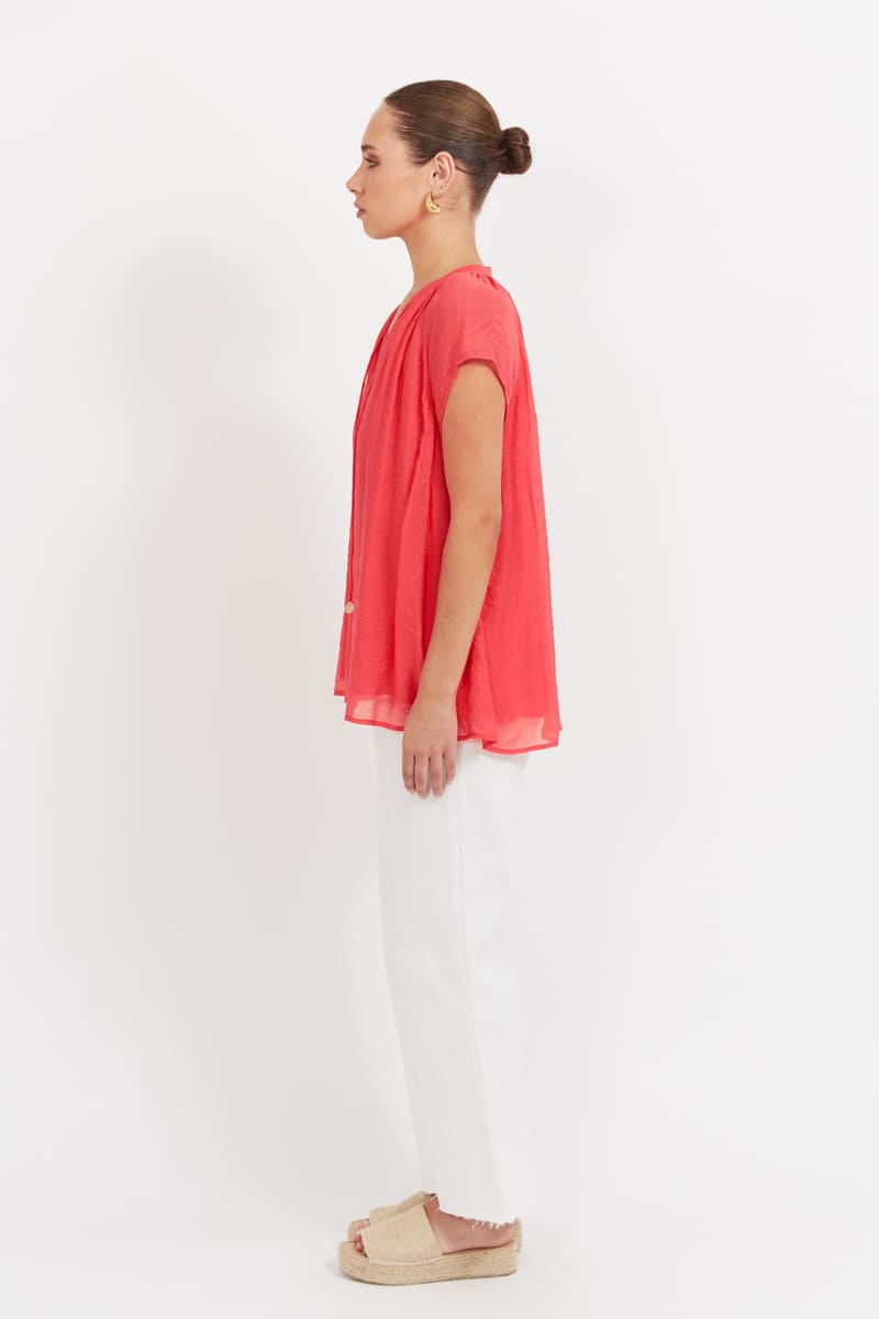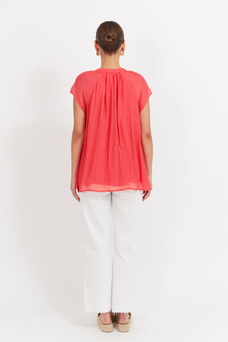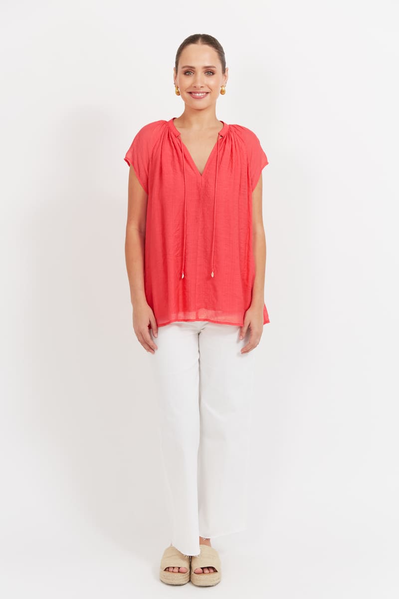 Baja Top, with capped short sleeves and shell tie at neckline