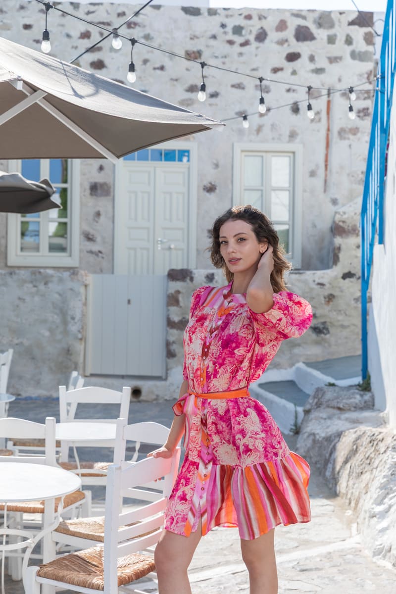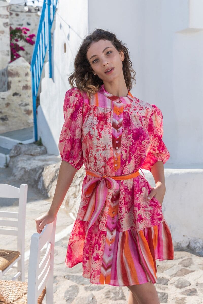 Zoey Dress. Featuring short puff sleeves, button front and lower tier