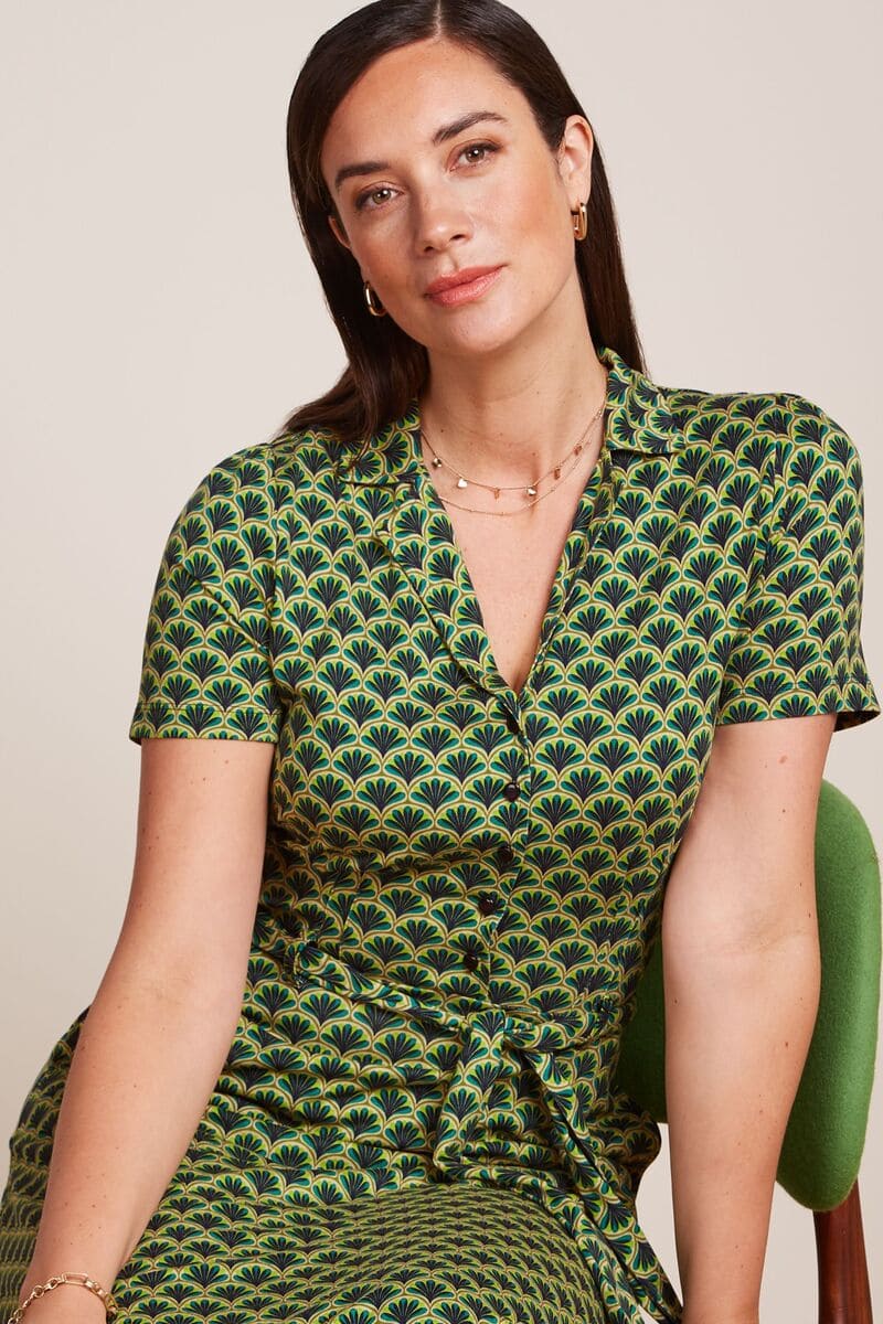 Sheeva Touche Dress. Featuring shirt collar, short sleeves and fabric belt